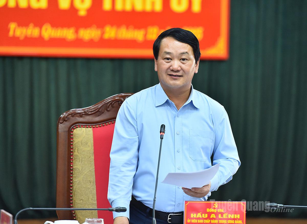 Chiều 24-12, dưới sự chủ trì của đồng chí Hầu A Lềnh, Ủy viên Ban Chấp hành Trung ương Đảng, Bí thư Tỉnh ủy, Ban Thường vụ Tỉnh ủy Tuyên Quang tổ chức Hội nghị chuyên đề tháng 12-2025, cho ý kiến vào chương trình công tác của Ban Thường vụ Tỉnh ủy năm 2026 và nhiều nội dung quan trọng về phát triển kinh tế – xã hội, quốc phòng – an ninh, xây dựng Đảng.