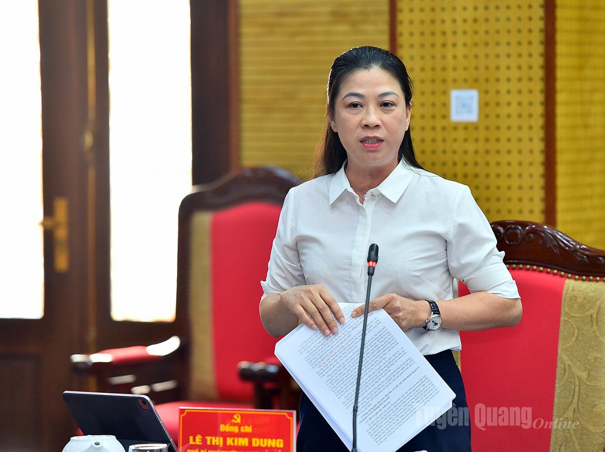 | Đồng chí Phó Bí thư Thường trực Tỉnh ủy Lê Thị Kim Dung phát biểu tại hội nghị. |