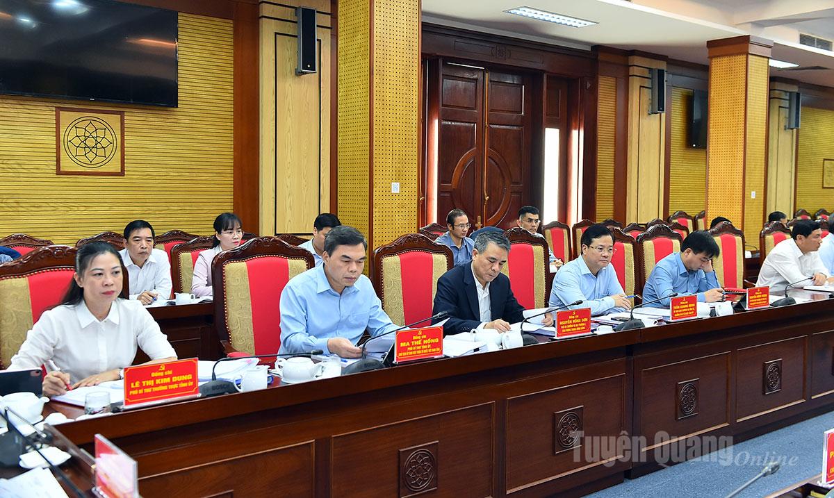 Dự hội nghị có các đồng chí: Lê Thị Kim Dung, Phó Bí thư Thường trực Tỉnh ủy; Nguyễn Văn Sơn, Phó Bí thư Tỉnh ủy, Chủ tịch HĐND tỉnh; Phan Huy Ngọc, Phó Bí thư Tỉnh ủy, Chủ tịch UBND tỉnh; Ma Thế Hồng, Phó Bí thư Tỉnh ủy, Chủ tịch Ủy ban MTTQ tỉnh; đại diện các Ban Đảng Trung ương theo dõi, phụ trách tỉnh Tuyên Quang; các đồng chí Ủy viên Ban Thường vụ Tỉnh ủy; lãnh đạo một số sở, ban, ngành tỉnh.
