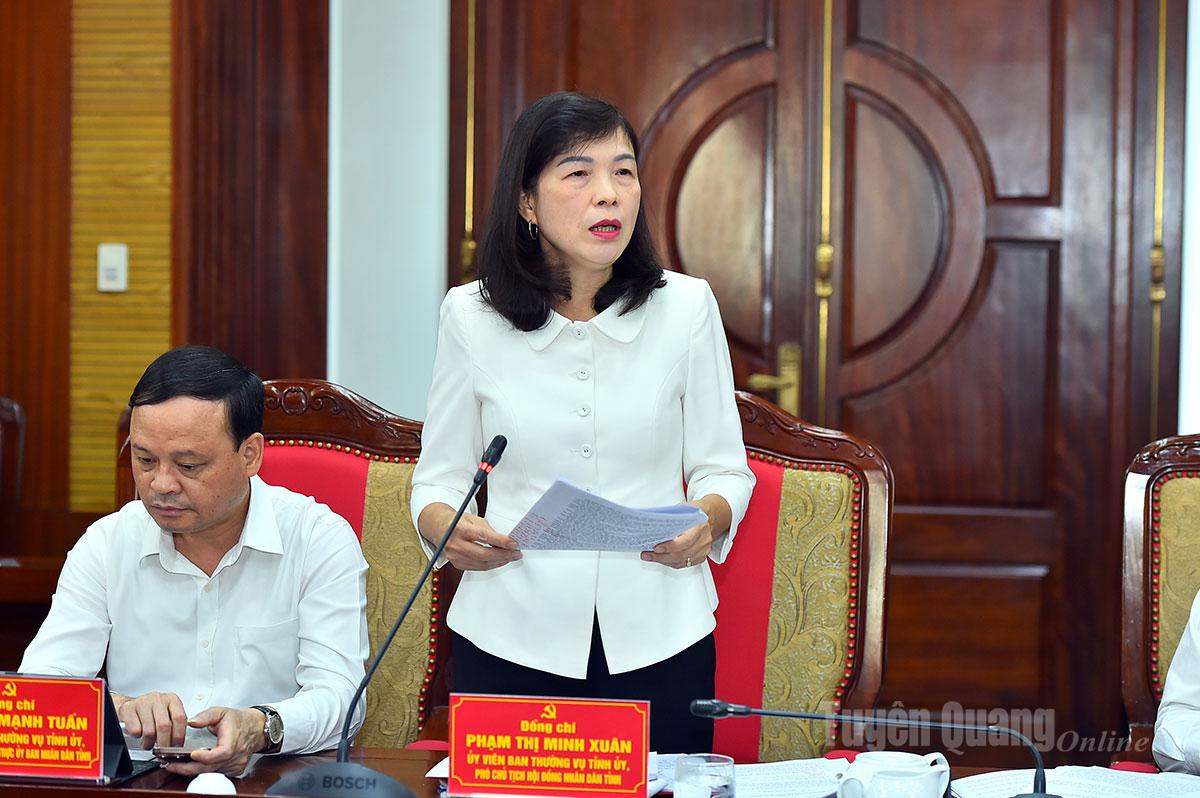 | Đồng chí Phó Chủ tịch HĐND tỉnh Phạm Thị Minh Xuân phát biểu tại hội nghị. |