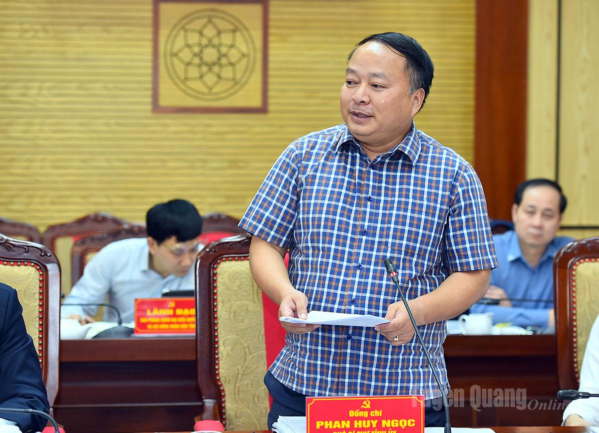 | Đồng chí Phó Bí thư Tỉnh ủy, Chủ tịch UBND tỉnh Phan Huy Ngọc phát biểu tại hội nghị. |