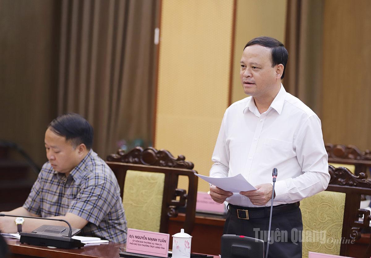 | Phó Chủ tịch Thường trực UBND tỉnh Nguyễn Mạnh Tuấn điều hành phần thảo luận tại cuộc họp. |