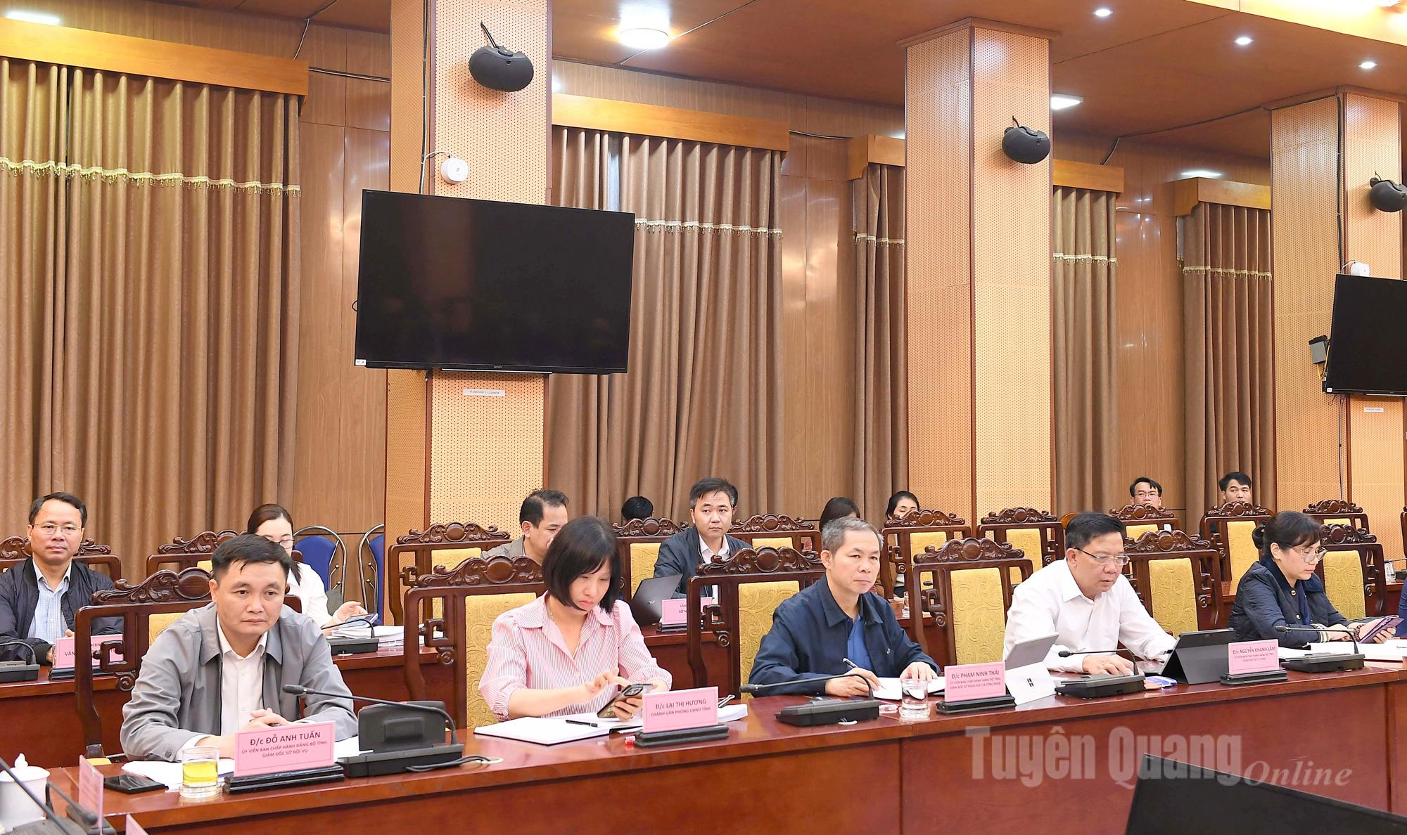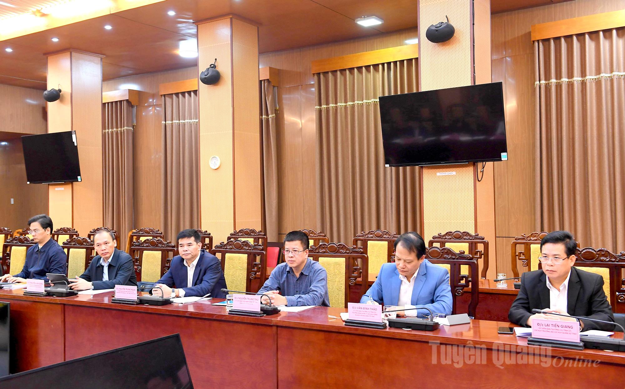 Đồng chí Phan Huy Ngọc, Phó Bí thư Tỉnh ủy, Chủ tịch UBND tỉnh và các đồng chí Phó Chủ tịch UBND tỉnh: Nguyễn Mạnh Tuấn, Ủy viên Ban Thường vụ Tỉnh ủy, Phó Chủ tịch Thường trực UBND tỉnh; Hoàng Gia Long, Ủy viên Ban Thường vụ Tỉnh ủy, Phó chủ tịch UBND tỉnh; Vương Ngọc Hà, Ủy viên Ban Thường vụ Tỉnh ủy, Phó chủ tịch UBND tỉnh đồng chủ trì hội nghị.