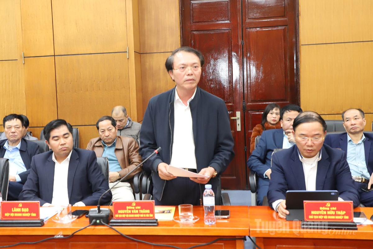 Bí thư Tỉnh ủy đề nghị Hiệp hội Doanh nghiệp tỉnh, Hiệp hội Doanh nghiệp nhỏ và vừa tỉnh, cùng với sự hỗ trợ của nhà nước, cần tự lực, tự cường, khai thác tiềm năng, thế mạnh của tỉnh; đồng chí mong muốn các doanh nghiệp, doanh nhân sẽ tiếp tục nỗ lực khắc phục khó khăn, duy trì ổn định sản xuất kinh doanh; đoàn kết, năng động, sáng tạo, tích cực chuyển đổi số, ứng dụng khoa học công nghệ để nâng cao hiệu quả sản xuất, kinh doanh; bám sát chủ trương của Đảng, Nhà nước, của tỉnh Tuyên Quang thực hiện thắng lợi các nhiệm vụ trong năm 2026; phát huy trách nhiệm xã hội, tích cực tham gia các hoạt động an sinh tại địa phương...