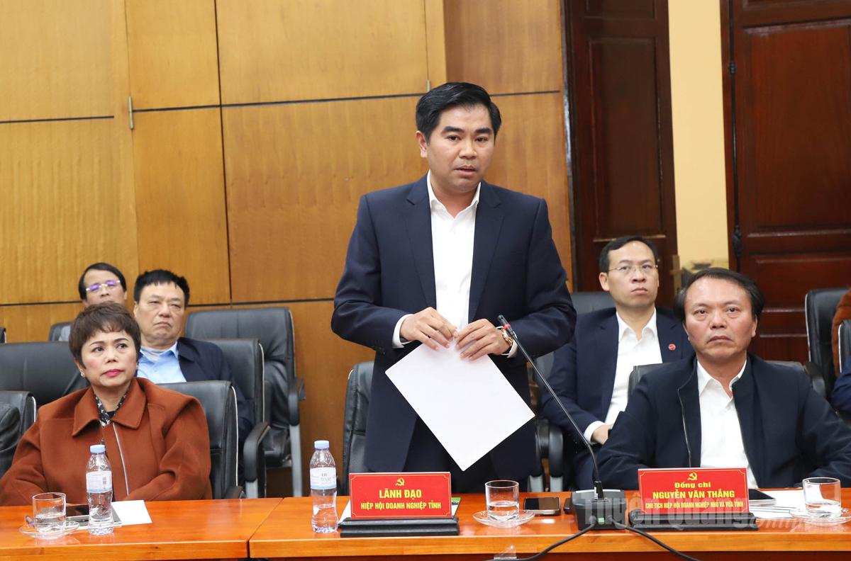 Đồng chí Bí thư Tỉnh uỷ đề nghị Hiệp hội Doanh nghiệp tỉnh, Hiệp hội Doanh nghiệp nhỏ và vừa tỉnh thường xuyên cập nhập, chuyển tải chủ trương, chính sách pháp luật nhà nước liên quan sản xuất kinh doanh đến với các hội viên; thực hiện tốt vai trò cầu nối với các cơ quan nhà nước, các địa phương; tiếp tục xây dựng đạo đức doanh nghiệp, xây dựng doanh nghiệp tiên phong theo từng lĩnh vực; xây dựng văn hóa doanh nghiệp.