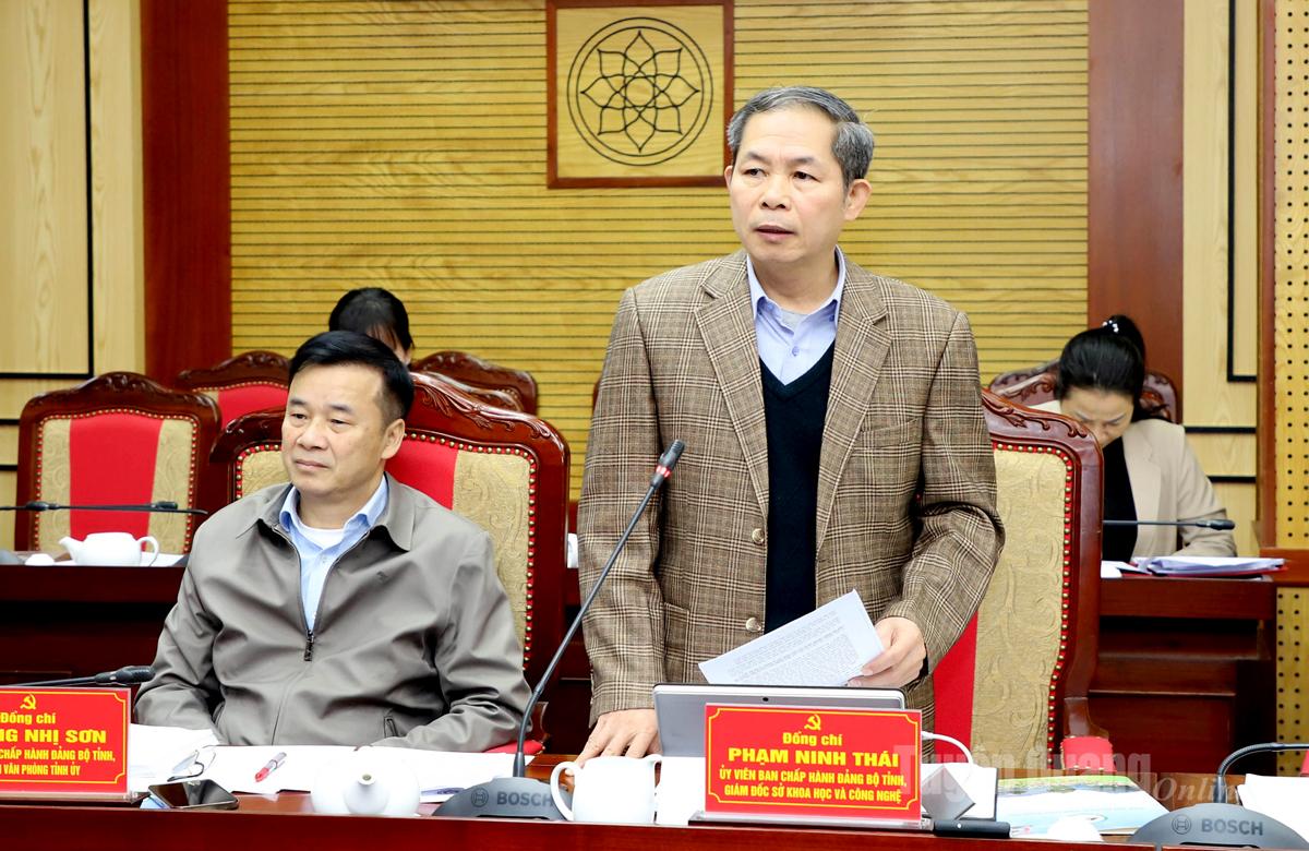 | Giám đốc Sở Khoa học và Công nghệ Phạm Ninh Thái phát biểu tại buổi làm việc. |