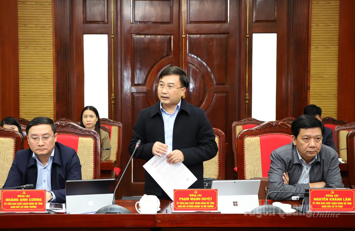 | Giám đốc Sở Nông nghiệp và Môi trường Phạm Mạnh Duyệt phát biểu tại buổi làm việc. |