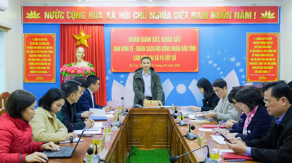 Ngày 13-1, Đoàn công tác Ban Kinh tế - Ngân sách HĐND tỉnh do đồng chí Trần Thanh Thủy, Ủy viên BCH Đảng bộ tỉnh, Trưởng ban Kinh tế - Ngân sách HĐND tỉnh làm Trưởng đoàn đã có buổi làm việc với xã Pà Vầy Sủ nhằm giám sát, khảo sát công tác giao chỉ tiêu kế hoạch phát triển kinh tế - xã hội, dự toán thu, chi ngân sách nhà nước năm 2026 và dự toán kinh phí phục vụ công tác bầu cử đại biểu Quốc hội khóa XVI và đại biểu HĐND các cấp nhiệm kỳ 2026 – 2031.