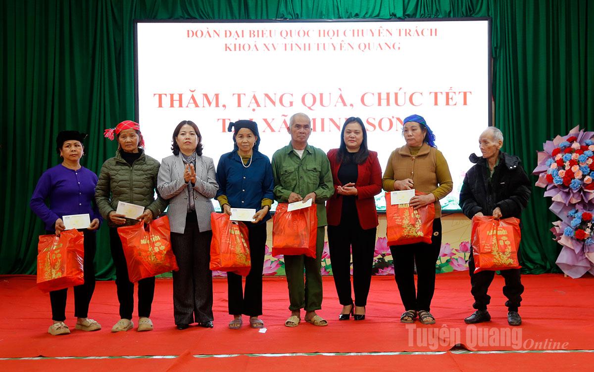 Tại chương trình, Đoàn ĐBQH khóa XV tỉnh đã trao 220 suất quà cho các gia đình chính sách, hộ nghèo, hộ có hoàn cảnh đặc biệt khó khăn; trao 30 xe đạp cho 30 học sinh nghèo vượt khó. Dịp này, Agribank Chi nhánh Tuyên Quang hỗ trợ 50 triệu đồng phục vụ công tác an sinh y tế cho Trạm Y tế xã Minh Sơn.