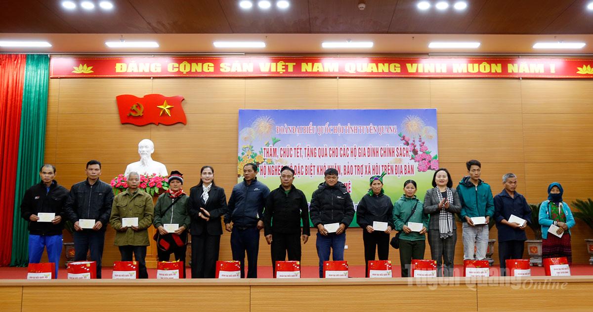 Đoàn ĐBQH khóa XV tỉnh Tuyên Quang đề nghị cấp ủy, chính quyền các địa phương tiếp tục quan tâm, triển khai hiệu quả các chính sách an sinh xã hội, chương trình giảm nghèo bền vững; đồng thời chủ động cân đối nguồn lực, tăng cường xã hội hóa để chăm lo Tết cho các gia đình chính sách, hộ còn nhiều khó khăn, nâng cao đời sống vật chất, tinh thần cho Nhân dân.