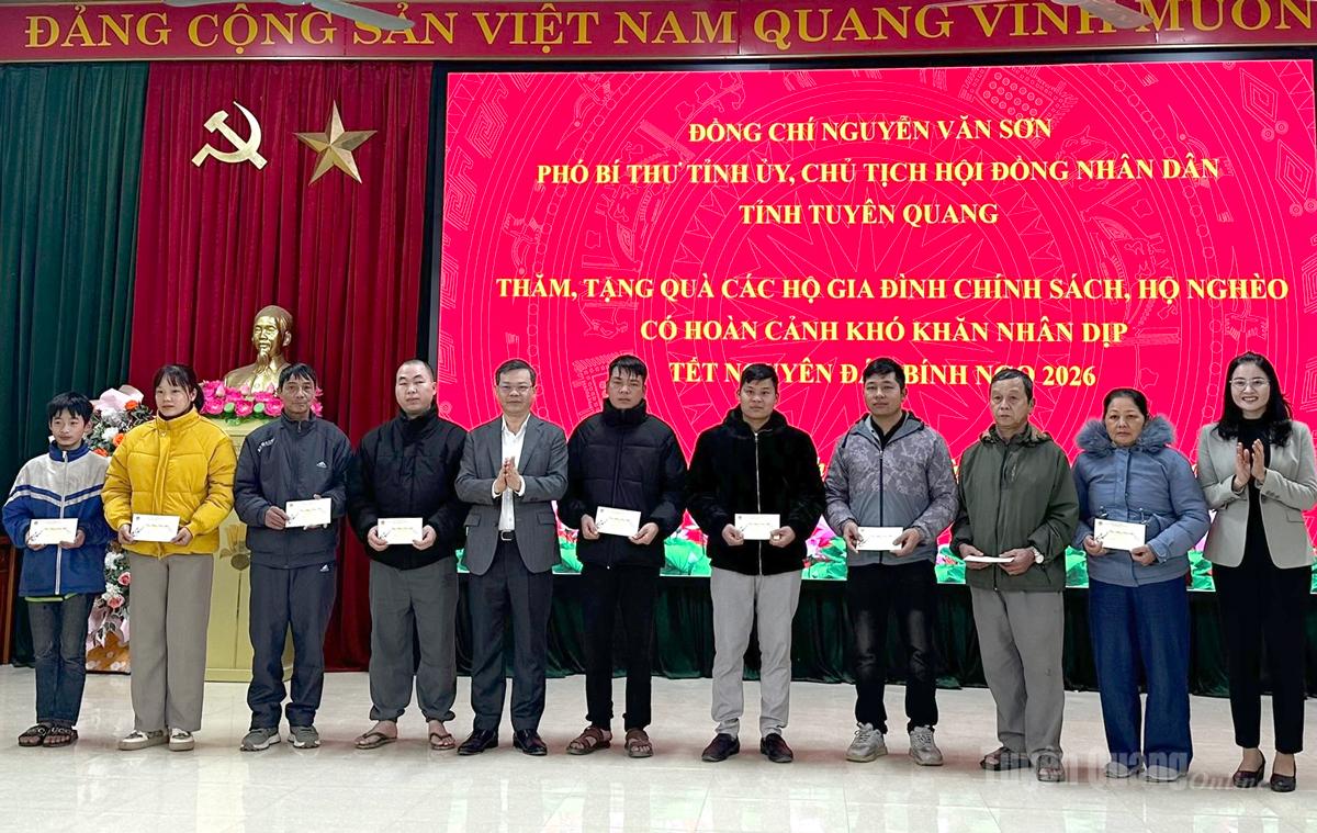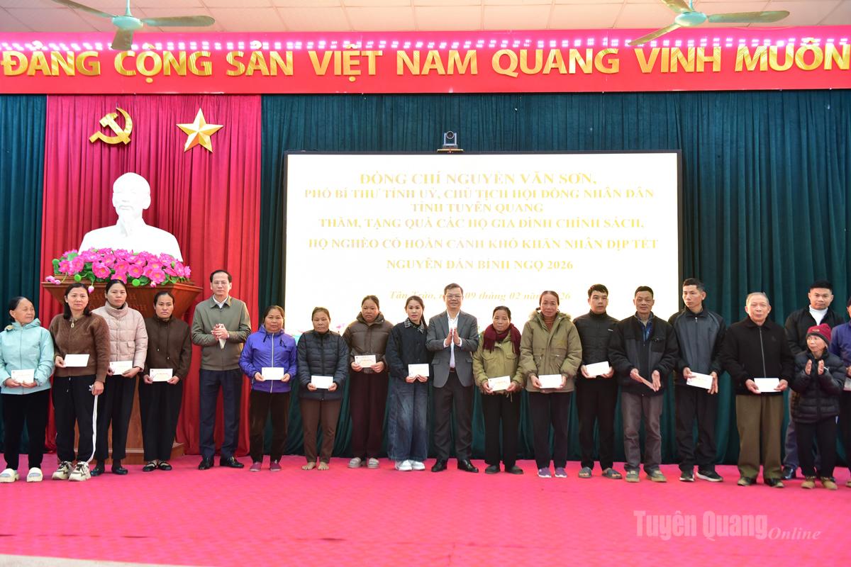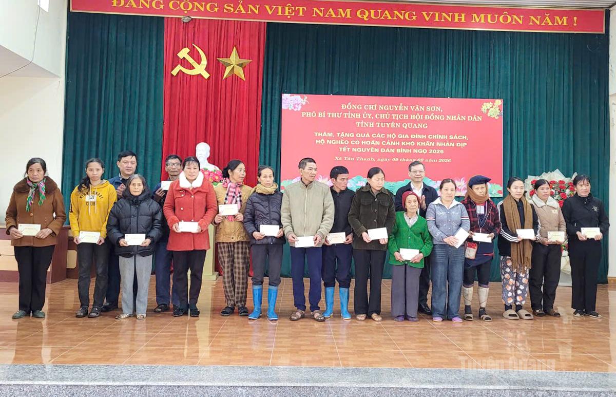 * Tiếp tục chương trình thăm, tặng quà nhân dịp đón Tết Nguyên đán Bính Ngọ 2026, chiều 9-2, đồng chí Nguyễn Văn Sơn, Phó Bí thư Tỉnh ủy, Chủ tịch HĐND tỉnh đã đến thăm, tặng quà Tết các gia đình chính sách, người có công với cách mạng, hộ nghèo, hộ có hoàn cảnh khó khăn trên địa bàn xã Minh Thanh và xã Tân Trào.