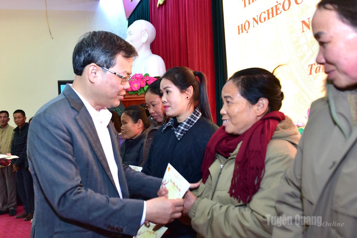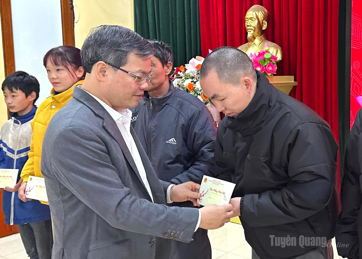 | Chủ tịch HĐND tỉnh Nguyễn Văn Sơn trao quà Tết cho các gia đình chính sách, người có công với cách mạng, hộ nghèo, hộ có hoàn cảnh khó khăn trên địa bàn xã Tân Trào. |