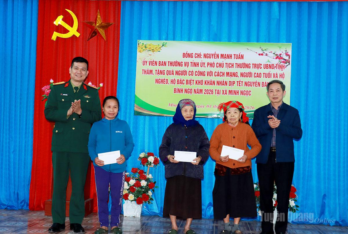 Ngày 4-2, đồng chí Nguyễn Mạnh Tuấn, Ủy viên Ban Thường vụ Tỉnh ủy, Phó Chủ tịch Thường trực UBND tỉnh đã đến thăm, tặng quà người cao tuổi, gia đình chính sách và hộ nghèo tại xã Đường Hồng và Minh Ngọc nhân dịp chuẩn bị đón Tết Nguyên đán Bính Ngọ 2026. Cùng đi có lãnh đạo Sở Công thương, Sở Khoa học và Công nghệ, Viettel Tuyên Quang.
