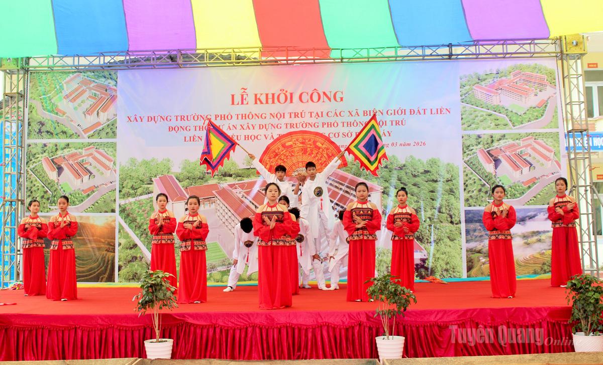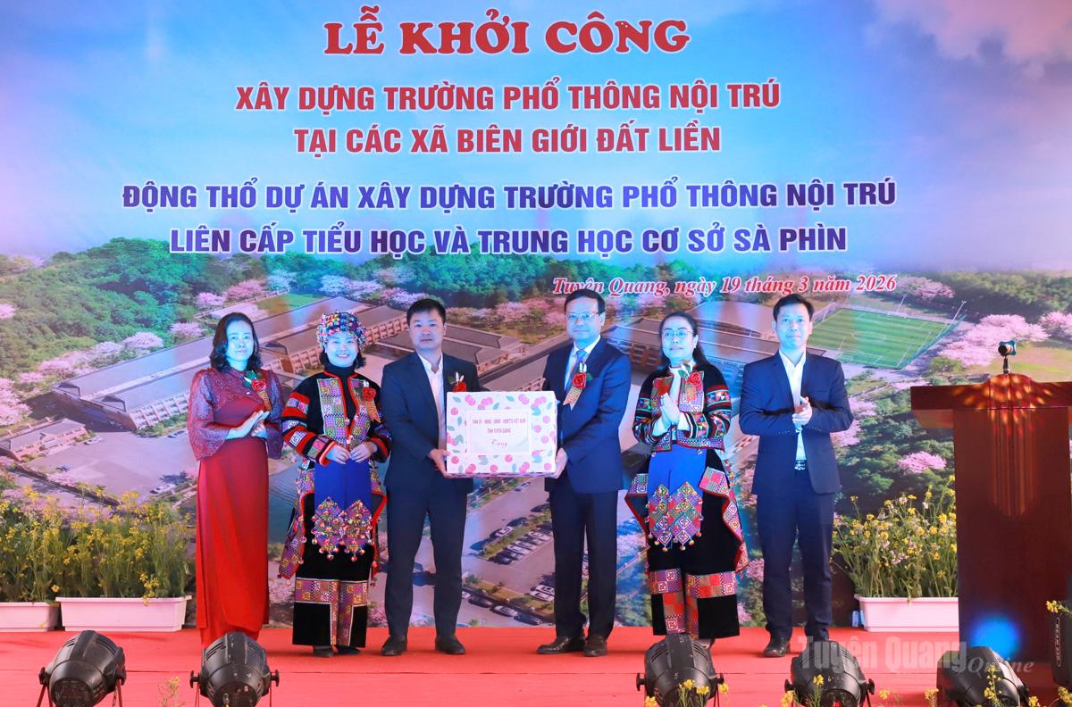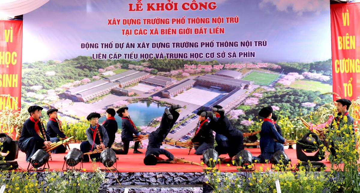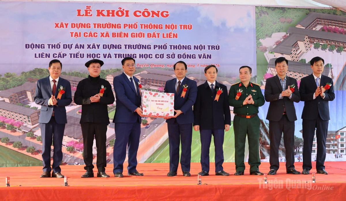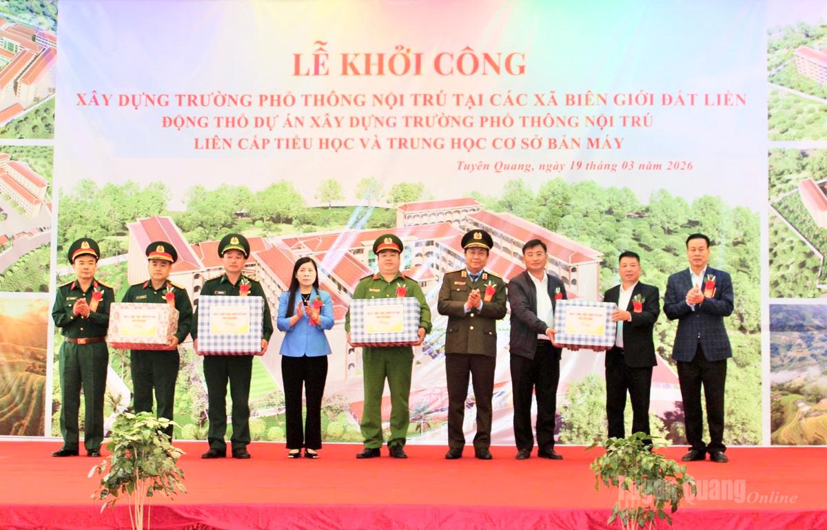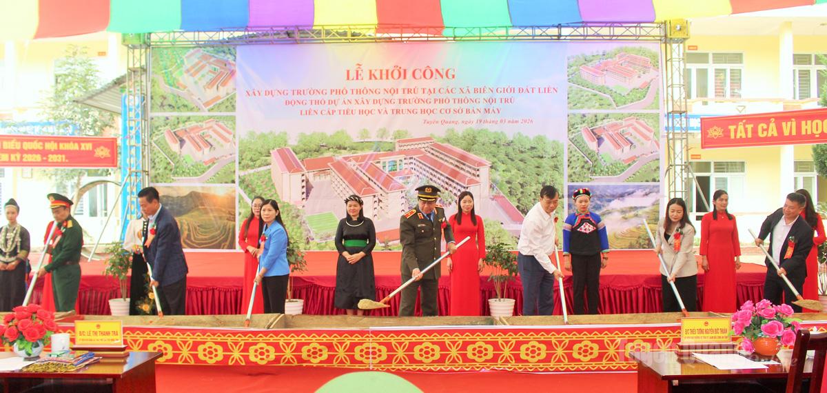 Sáng 19-3, tỉnh Tuyên Quang long trọng tổ chức Lễ động thổ xây dựng 11 trường Phổ thông nội trú liên cấp Tiểu học và THCS tại các xã biên giới.