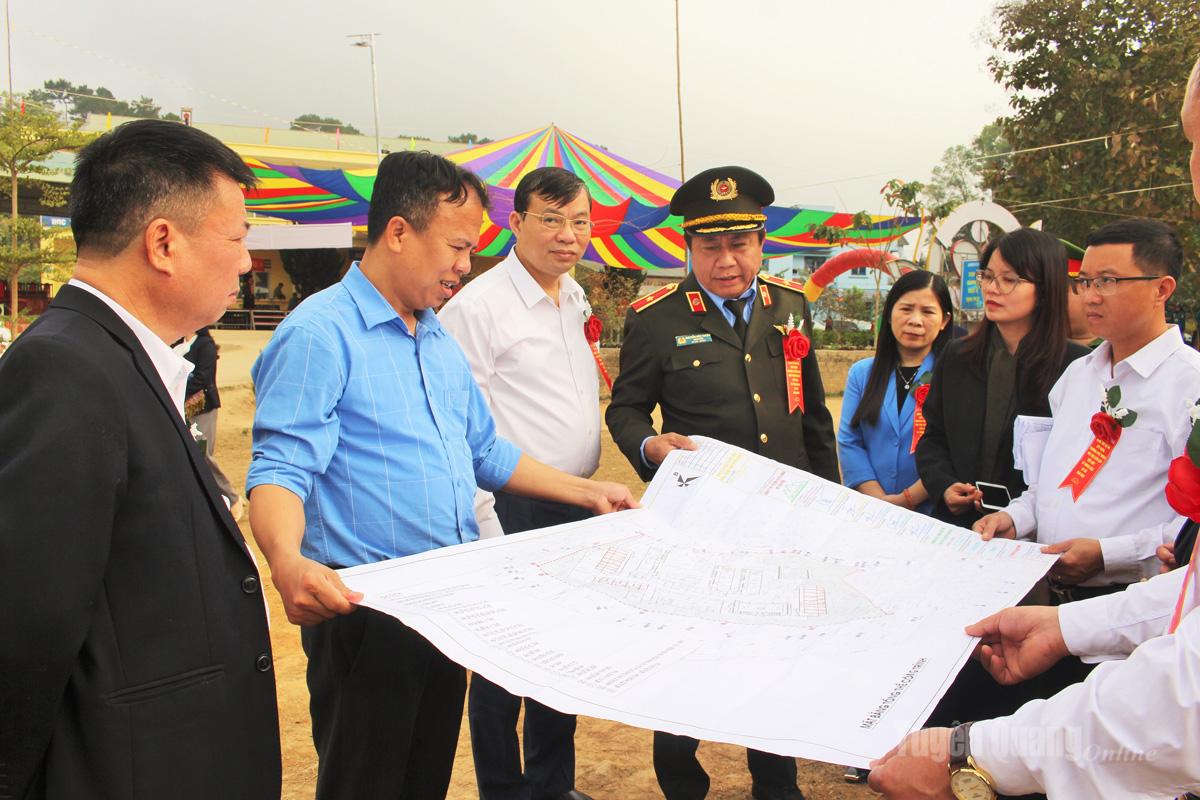 | Thiếu tướng Nguyễn Đức Thuận, Ủy viên Ban Thường vụ Tỉnh ủy, Giám đốc Công an tỉnh cùng các đại biểu kiểm tra thực tế tại dự án trường Phổ thông nội trú liên cấp Tiểu học và THCS Bản Máy. |