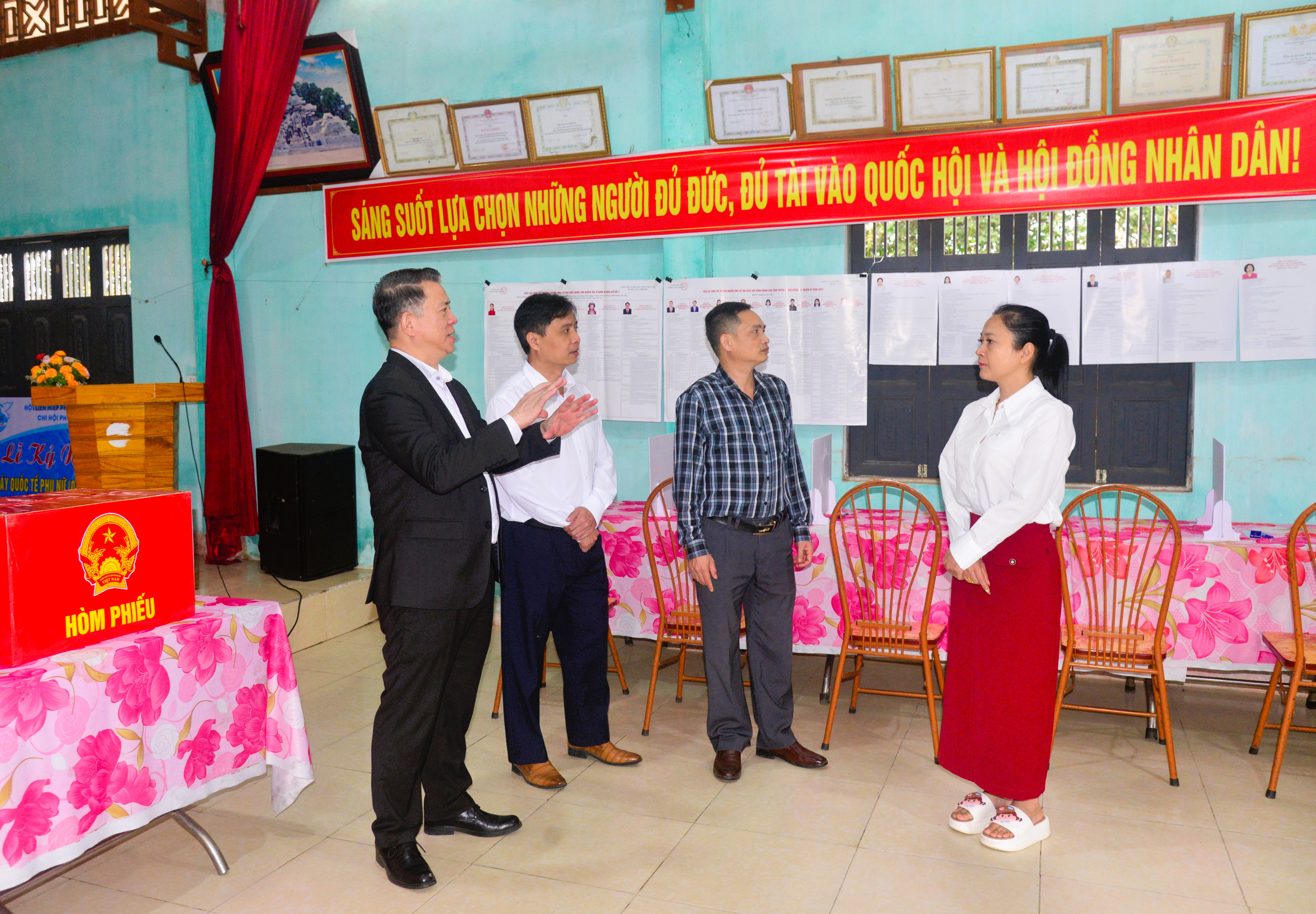 Trưởng ban Tuyên giáo và Dân vận Tỉnh ủy Trần Mạnh Lợi kiểm tra công tác bầu cử tại các xã Yên Sơn, Tân Long