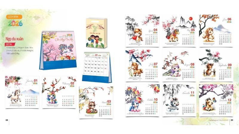 - Độ bền và tuổi thọ sản phẩm: Giấy cao cấp đảm bảo lịch đủ cứng cáp để đứng vững và không bị cong vênh trong suốt một năm sử dụng.