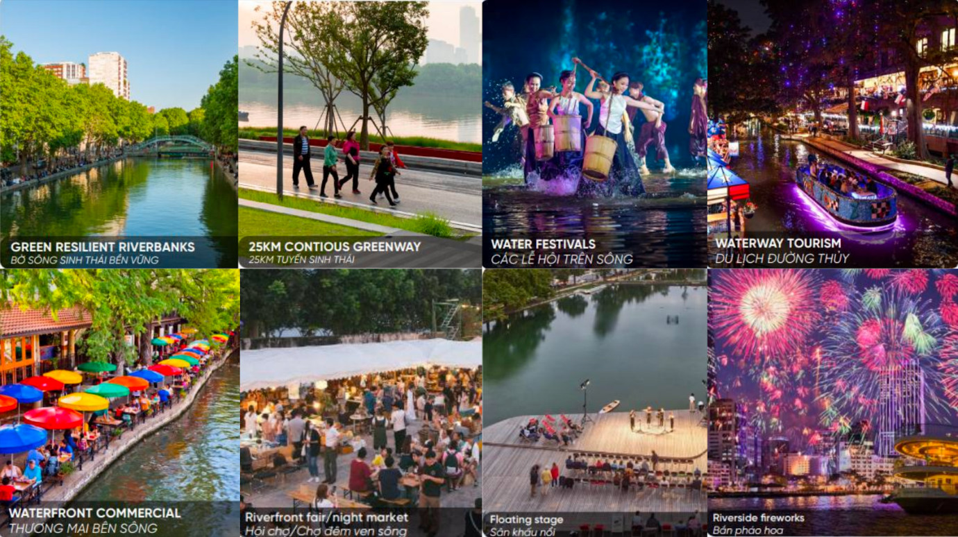 - Uptown Island (43 ha): khu an cư sinh thái cao cấp với trường liên cấp, clubhouse, công viên ven sông và vận hành theo chuẩn Sun Group.