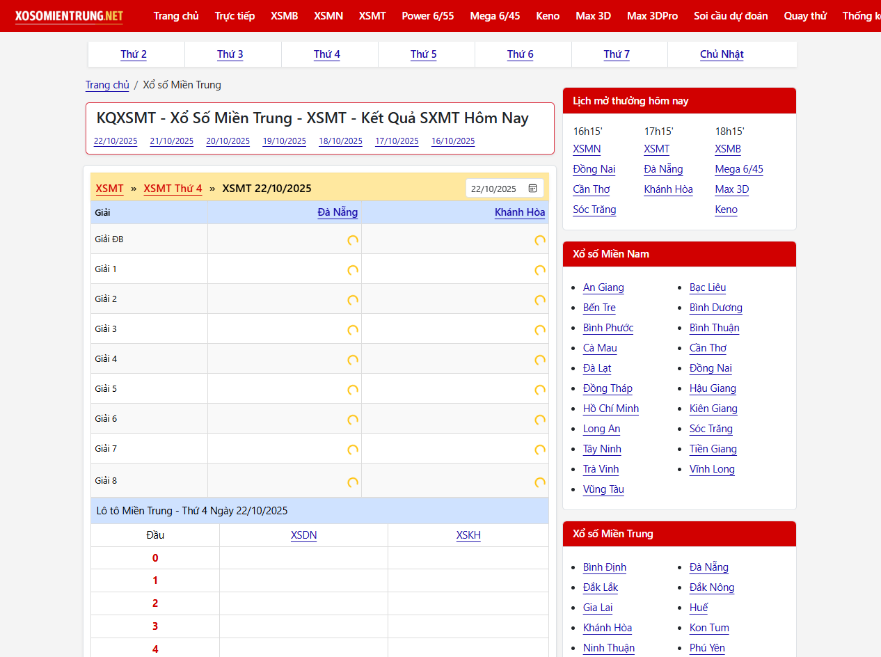 Ngay tại trang chủ, bạn sẽ thấy bảng tổng hợp đầy đủ kết quả xổ số miền Trung của ngày hôm nay, kèm lịch quay và thống kê nhanh. Mọi thứ được sắp xếp khoa học, rõ ràng, phù hợp cho cả người mới bắt đầu lẫn người chơi lâu năm.