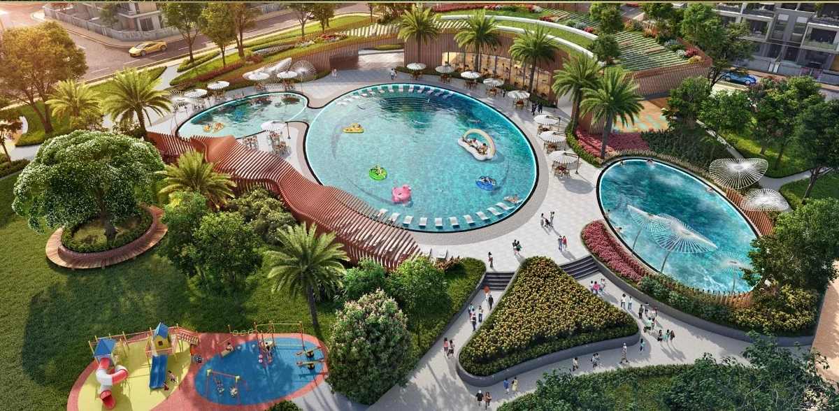 Dự án dành phần lớn diện tích cho không gian xanh, mặt nước và tiện ích công cộng, đảm bảo mật độ xây dựng thấp. Việc ưu tiên phát triển hệ thống cây xanh, công viên sinh thái giúp điều hòa không khí, tạo lá phổi xanh cho toàn khu đô thị. Đây là mô hình đáp ứng xu thế sống xanh, bền vững đang thịnh hành trên thế giới.