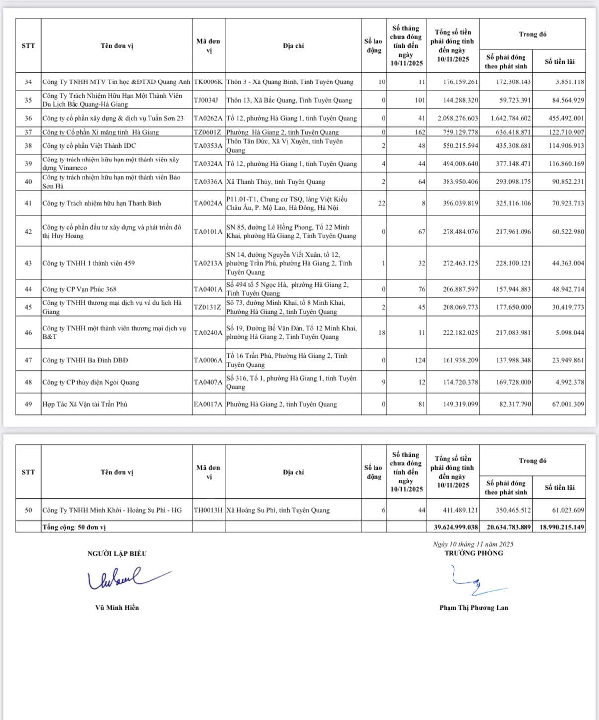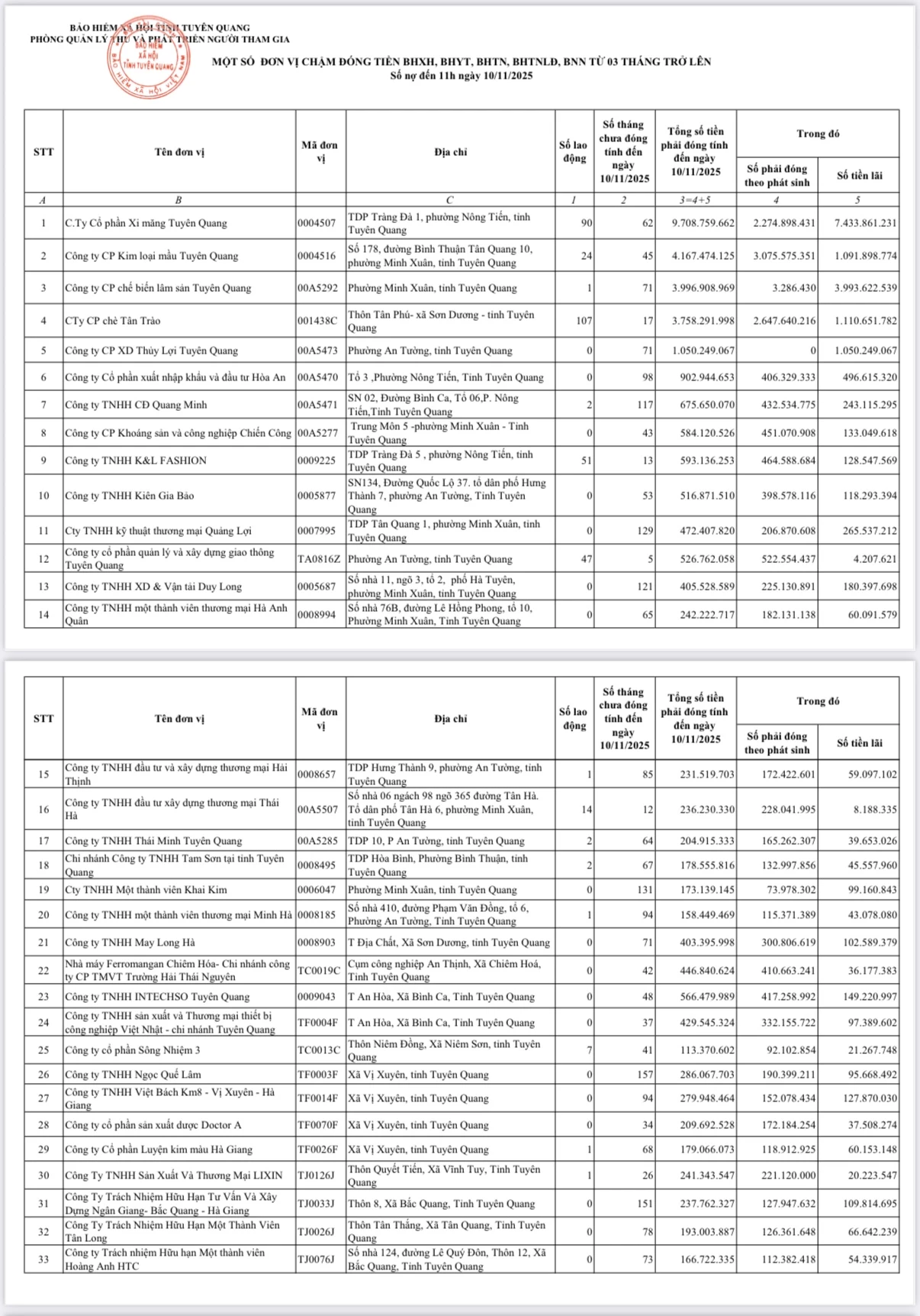 BHXH tỉnh phối hợp với Báo và phát thanh, truyền hình Tuyên Quang công khai danh sách 50 đơn vị chậm đóng BHXH, BHYT, BHTN từ 3 tháng trở lên .