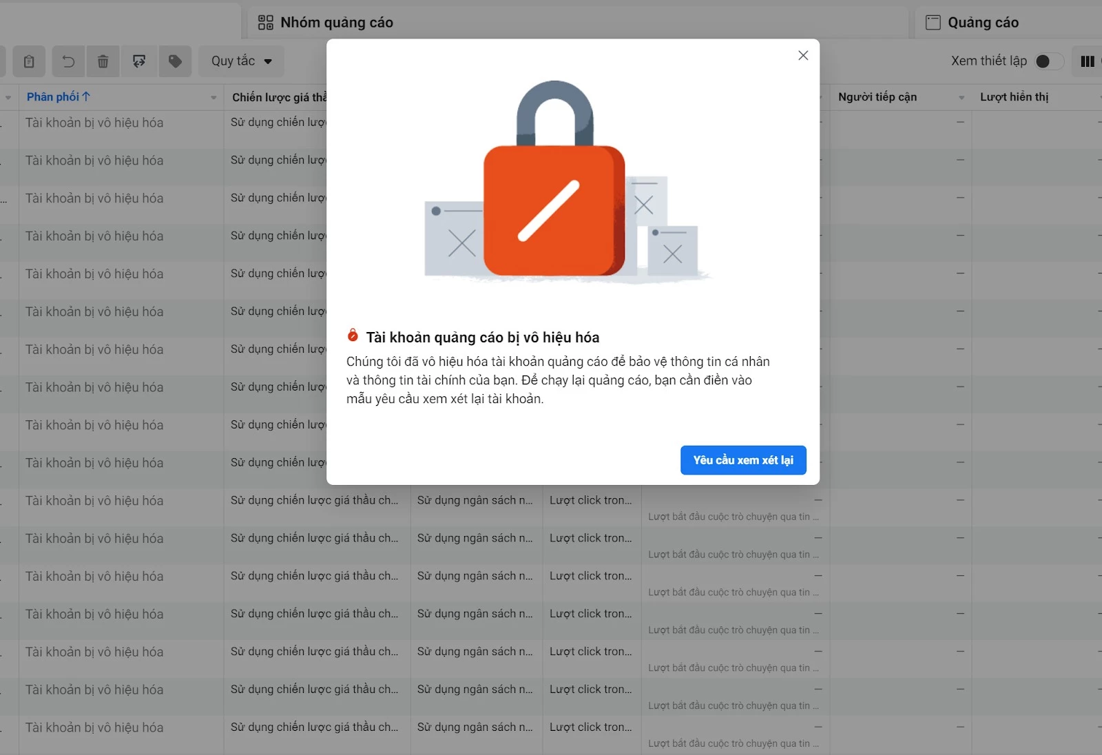 Tài khoản quảng cáo bị vô hiệu hóa gây ảnh hưởng không nhỏ đến doanh nghiệp