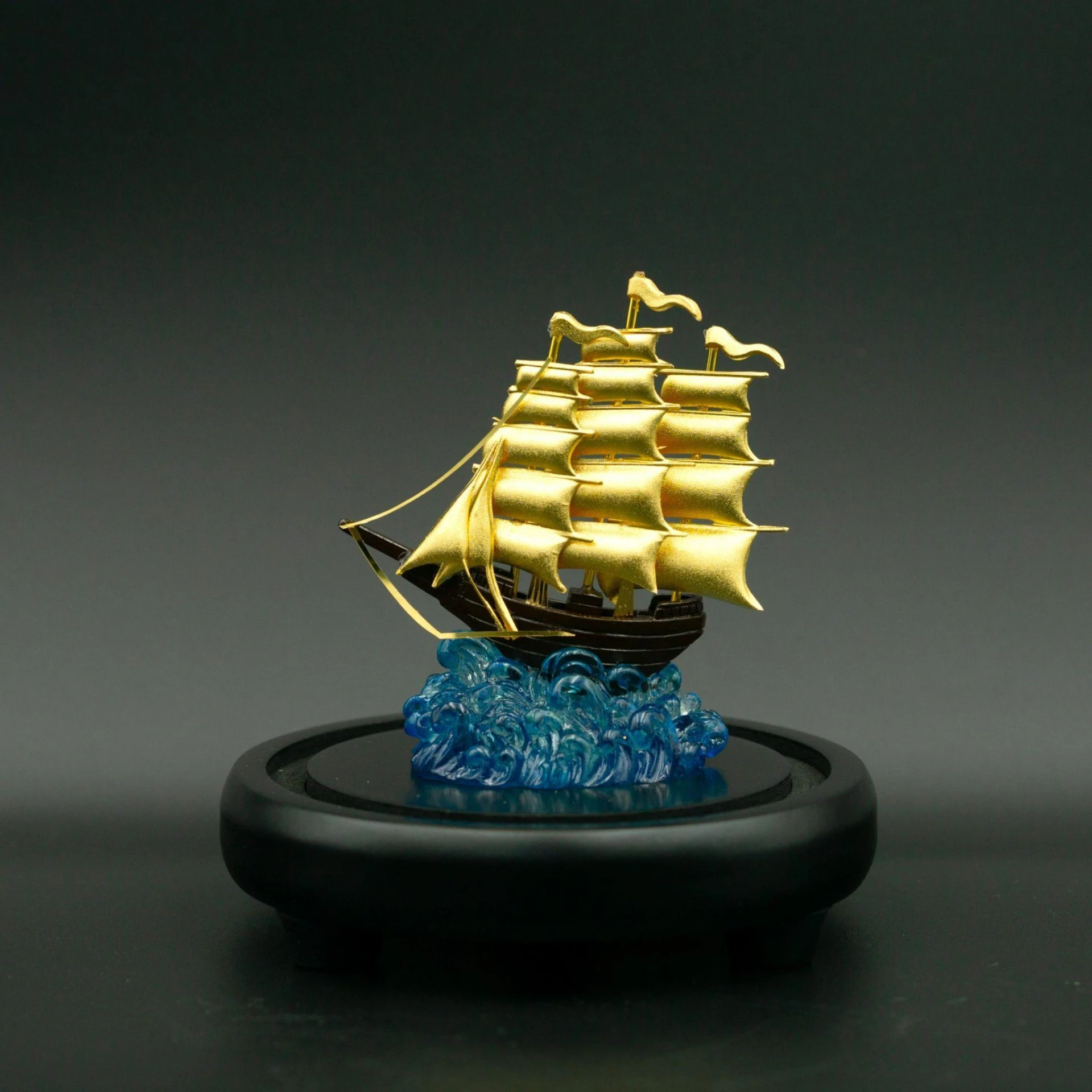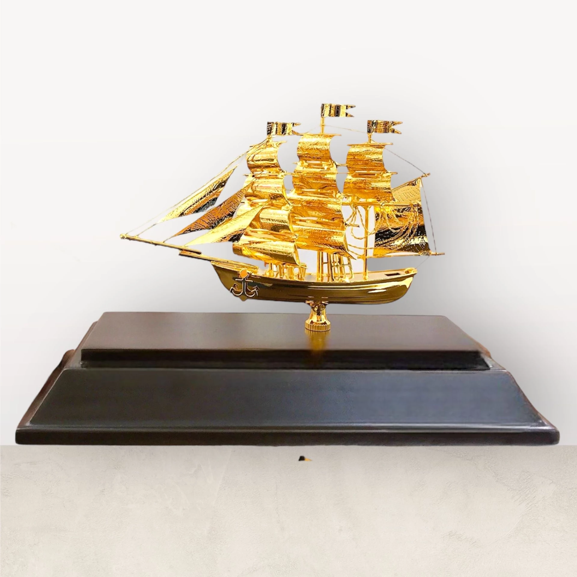 Với lớp mạ vàng 24K sáng bóng và thiết kế tinh xảo, mô hình thuyền buồm mạ vàng giúp không gian trở nên sang trọng, chuyên nghiệp và có chiều sâu thẩm mỹ. Sản phẩm phù hợp trưng bày tại nhiều vị trí như bàn làm việc lãnh đạo, kệ trưng bày, quầy lễ tân hoặc phòng tiếp khách.