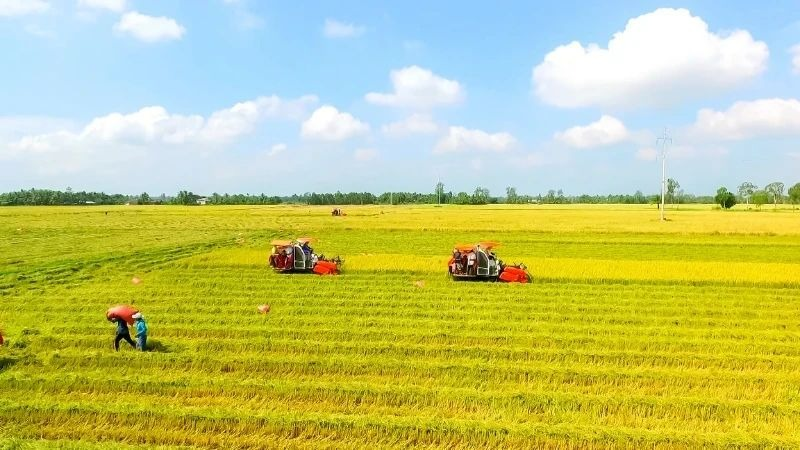 Sự hỗ trợ của máy móc công nghệ cao là yếu tố then chốt giúp quy trình sản xuất gạo công nghiệp đạt năng suất lớn và giảm thiểu chi phí nhân công.