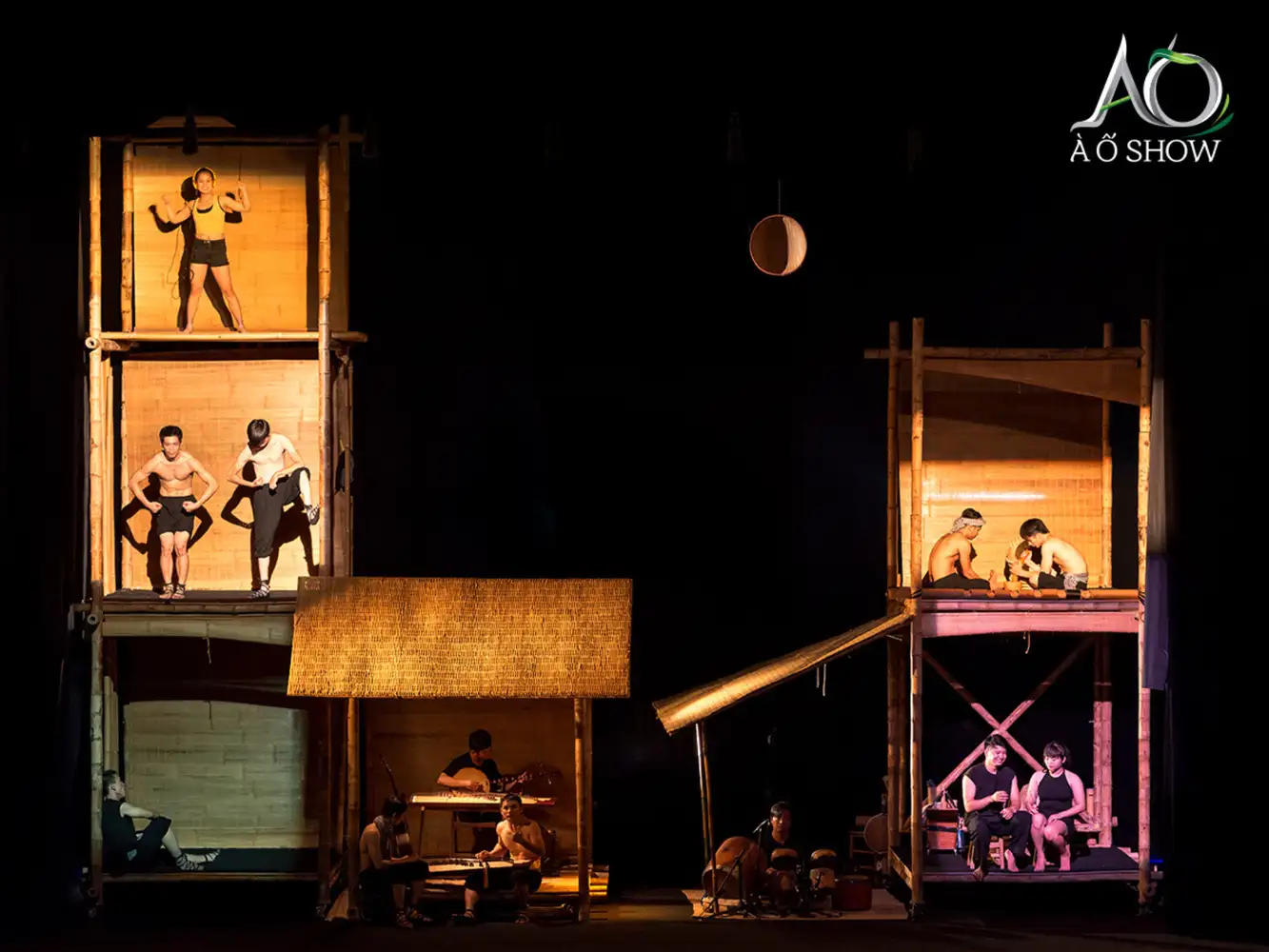 Điểm nhấn của À Ố Show nằm ở ngôn ngữ sân khấu tối giản nhưng giàu sức gợi. Các tiết mục xiếc tre và nhào lộn được dàn dựng công phu, kết hợp với múa đương đại, tạo nên những chuyển động uyển chuyển nhưng vẫn mạnh mẽ. Xen kẽ mạch diễn là những chi tiết hài hước, mang đến tiếng cười hóm hỉnh và cảm giác gần gũi cho khán giả.