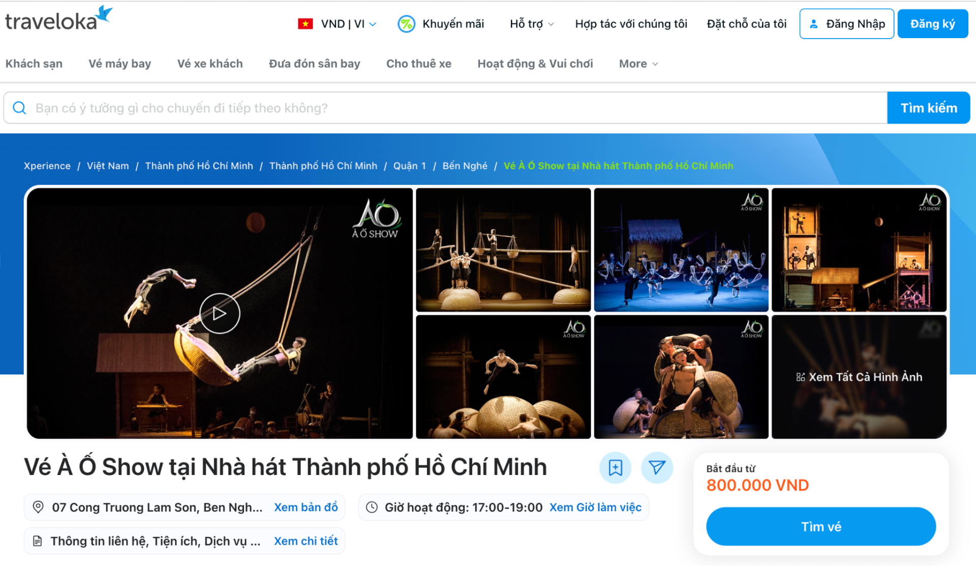 Để hành trình khám phá nghệ thuật trở nên thuận tiện, việc lựa chọn nền tảng đặt vé uy tín là yếu tố quan trọng. Traveloka, với định vị là nền tảng du lịch hàng đầu Đông Nam Á, mang đến giải pháp giúp du khách dễ dàng tìm kiếm và đặt vé À Ố Show nhanh chóng, minh bạch và tiện lợi. Việc chủ động đặt vé giúp khán giả dễ dàng sắp xếp lịch trình, đặc biệt trong những khung giờ biểu diễn được yêu thích.