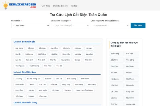 Xuất phát từ nhu cầu thực tế đó, website Xem Lịch Cắt Điện được xây dựng như một trang thông tin trực tuyến chuyên tổng hợp và cung cấp lịch cắt điện trên phạm vi toàn quốc. Nền tảng này hoạt động độc lập, hướng đến mục tiêu phục vụ cộng đồng thông qua việc giúp người dân tra cứu thông tin nhanh chóng, miễn phí và dễ sử dụng.