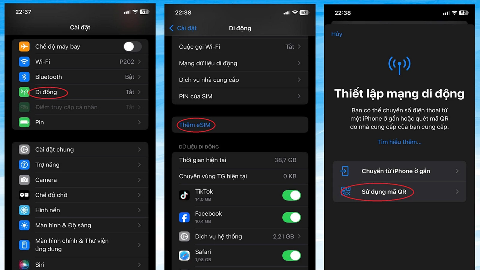 - Bước 2: Truy cập mục Cài đặt → Di động → Thêm eSIM.
