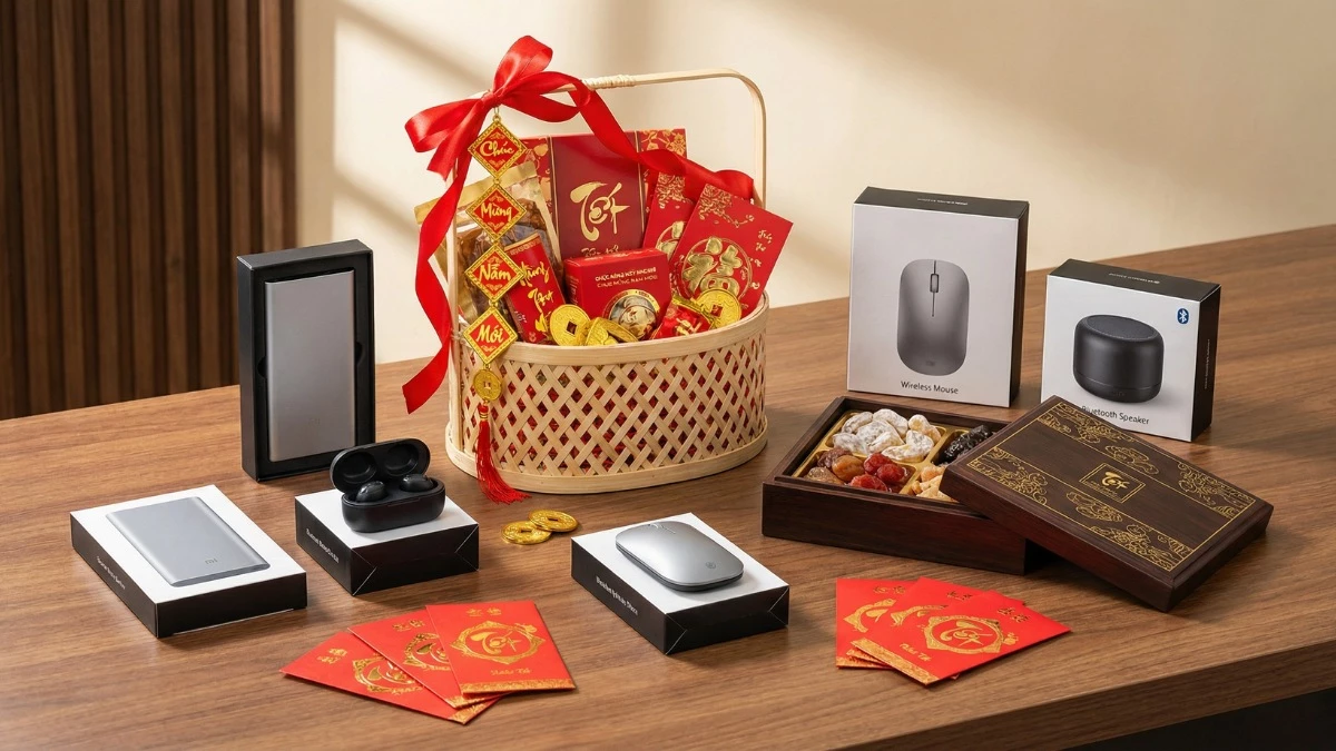 Danh sách dưới đây bao gồm các lựa chọn quà Tết cho nhân viên đa dạng, từ những món quà truyền thống đến các sản phẩm công nghệ hiện đại. Những gợi ý này giúp đơn vị dễ dàng tìm ra phương án phù hợp với ngân sách cũng như nhu cầu sử dụng thực tế.