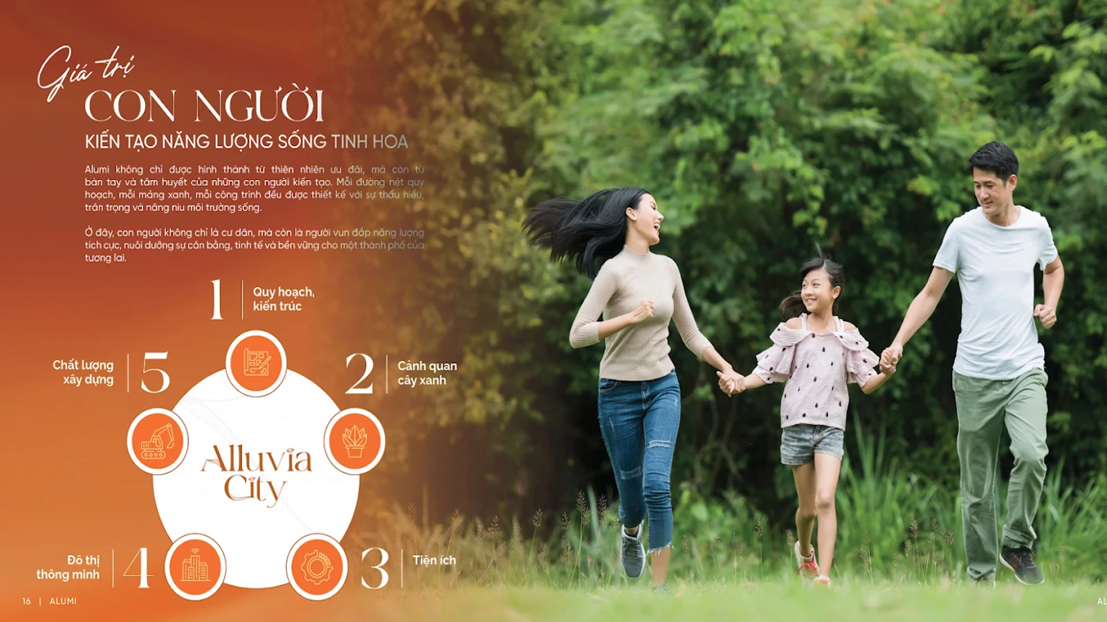 Vị trí này không chỉ mang lại sự tiện lợi di chuyển hàng ngày mà còn tạo nên giá trị phong thủy “Nhân vượng – Gia an” nhờ giáp sông Hồng. Alluvia City thực sự là “toạ độ kim cương” cho cả an cư lẫn đầu tư dài hạn, đặc biệt khi hạ tầng khu vực đang phát triển mạnh mẽ. Quy hoạch xanh – Mật độ thấp, thiên nhiên bao phủ Với mật độ xây dựng chỉ 16%, Alluvia City dành tới hơn 20% diện tích cho cây xanh và mặt nước, bao gồm công viên trung tâm rộng 15 ha, hồ điều hòa 10 ha cùng hệ thống kênh rạch ven sông. Dự án được triển khai theo ba giai đoạn bền vững:
