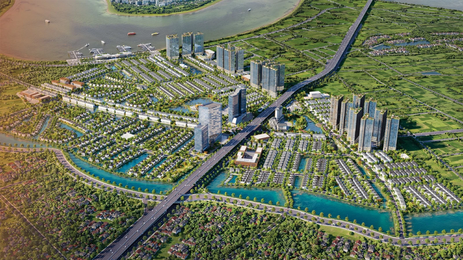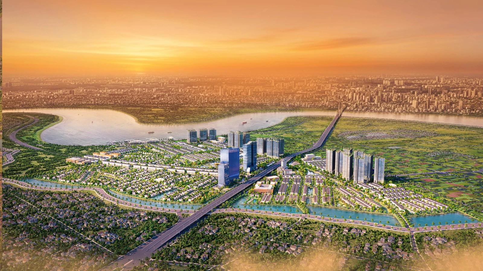 Sản phẩm đa dạng gồm biệt thự sinh thái, biệt thự đảo, shophouse ven hồ, chung cư cao cấp, khách sạn và trung tâm thương mại dịch vụ. Mỗi căn hộ, biệt thự đều được thiết kế hướng sông hoặc công viên, tối ưu hóa ánh sáng và gió tự nhiên.