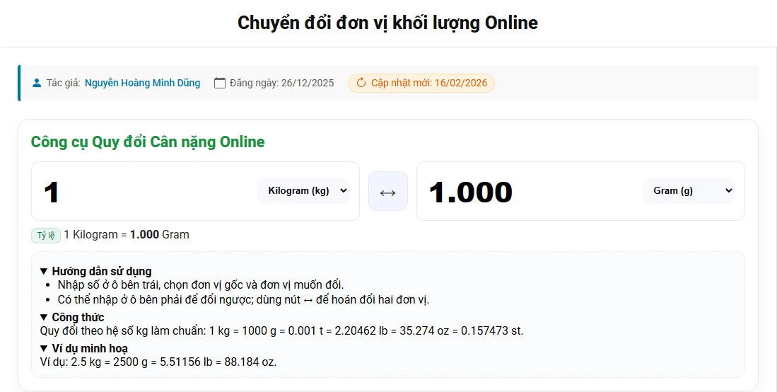 Nếu bạn cần quy đổi nhanh giữa các đơn vị đo khối lượng mà không muốn tính nhẩm, MaytinhHS cung cấp công cụ đổi đơn vị khối lượng online miễn phí tại maytinhhs.net.