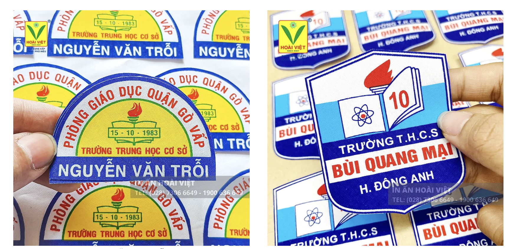 - In phù hiệu trường học: Mẫu mã đa dạng, thể hiện đúng cấp học và tên trường sau sáp nhập.