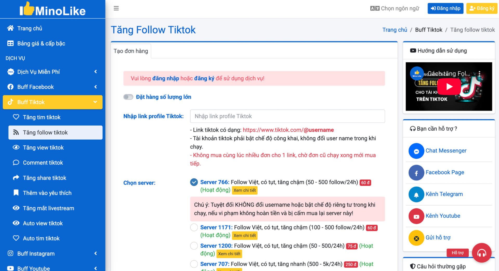 Hướng dẫn sử dụng dịch vụ tăng follow TikTok Minolike