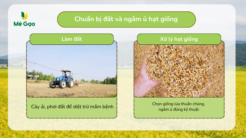 Xử lý giống: Hạt giống phải là loại thuần chủng thượng hạng, được ngâm ủ đúng kỹ thuật để nảy mầm đồng đều, tạo tiền đề cho những hạt gạo "Ngon - Sạch - Không chất bảo quản".