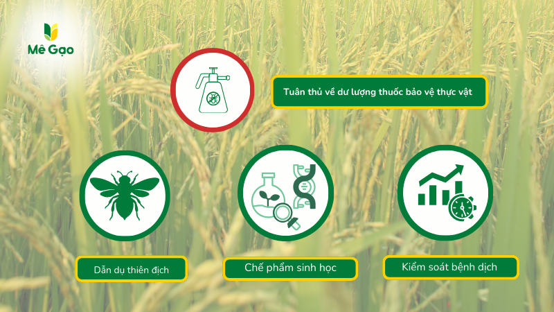 Phòng trừ sâu bệnh: Sử dụng thiên địch tự nhiên hoặc chế phẩm sinh học để trị rầy nâu, sâu cuốn lá, và bệnh đạo ôn (thường xuất hiện khi sương mù, độ ẩm cao). Tuân thủ tuyệt đối tiêu chuẩn về dư lượng thuốc bảo vệ thực vật.
