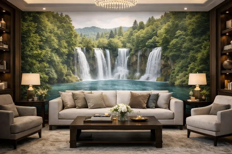 Mang cả thiên nhiên hùng vĩ vào phòng khách với tranh dán tường phong cảnh thác nước tươi mát.