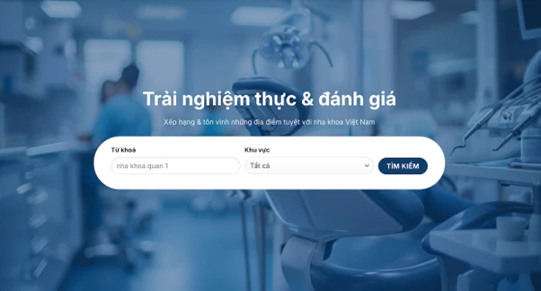 Giao diện tìm kiếm của website “Xếp hạng nha khoa”