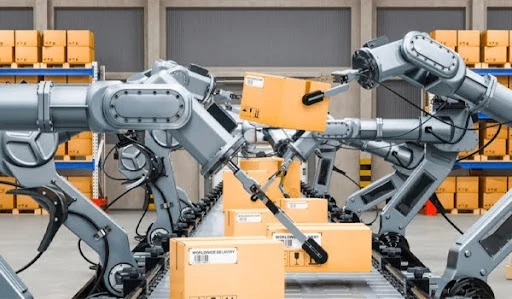 Robot cộng tác có thể hỗ trợ vận chuyển hàng hóa giữa các khu vực trong nhà máy, giúp tối ưu hoá quy trình logistics nội bộ.