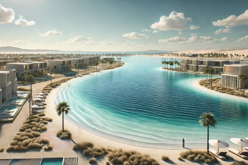 Biển hồ Paradise Lagoon: Hồ nước mặn nhân tạo 4 mùa, rộng 433 ha sử dụng nước biển tự nhiên giúp cư dân không cần rời khỏi thành phố mà vẫn có thể ngắm biển, bơi lội hay tổ chức picnic ngay trước hiên nhà.