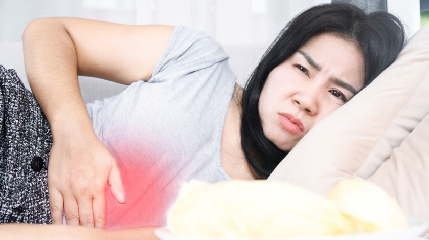 - Rối loạn tiêu hóa: Bụng chướng, đầy hơi, cảm giác thức ăn chậm tiêu dù chỉ ăn nhẹ.