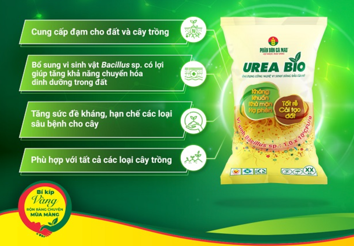 Nhờ ứng dụng công nghệ sinh học hiện đại, Urea Bio không chỉ đơn thuần là phân đạm mà còn đóng vai trò như một “trợ thủ” giúp cải tạo đất và nâng cao sức sống cho cây trồng. Sản phẩm đặc biệt phù hợp với điều kiện canh tác tại Đồng bằng sông Cửu Long – nơi thường xuyên chịu ảnh hưởng của xâm nhập mặn và phèn hóa đất.