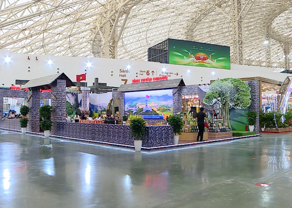 Tại khu triển lãm “Thu đất Việt-Sắc nước hương thu”, tỉnh Tuyên Quang được bố trí không gian trưng bày rộng 200m². Gian hàng hài hòa giữa hiện đại và truyền thống, lấy cảm hứng từ mô hình Cột cờ Quốc gia Lũng Cú và cổng đá của đồng bào dân tộc Mông, tạo điểm nhấn thị giác ấn tượng.
