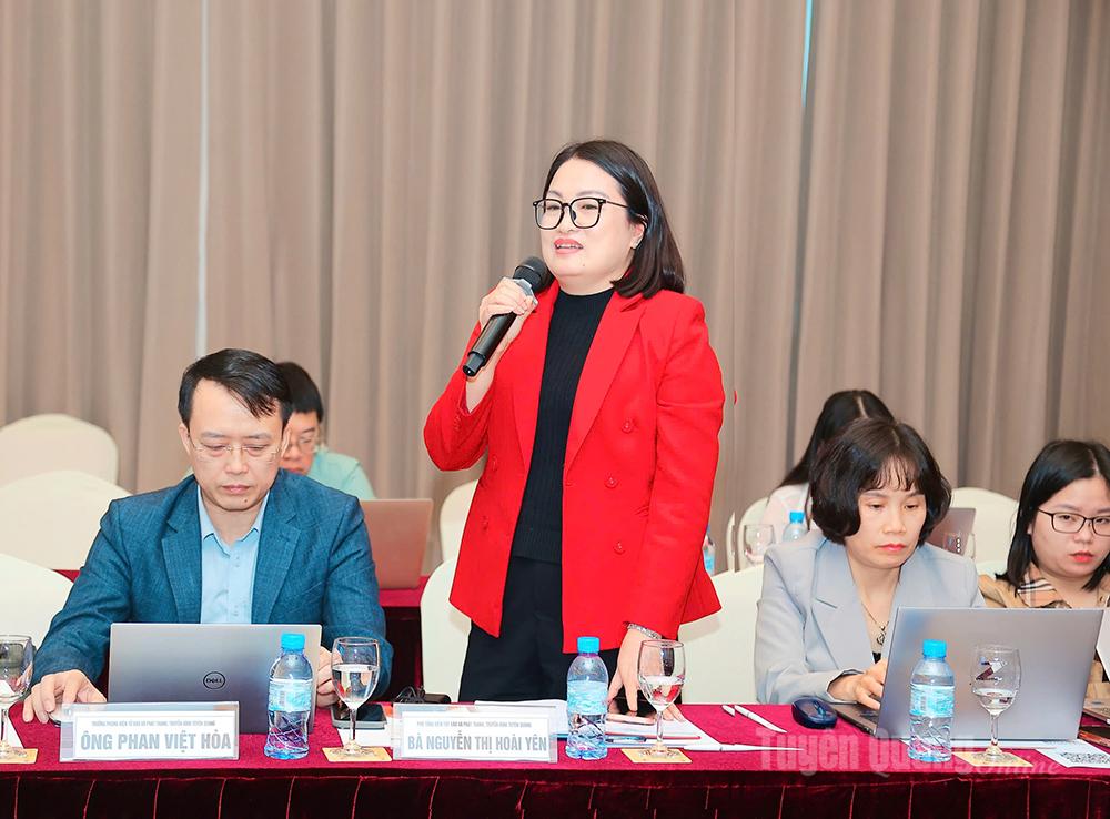 | Nhà báo Nguyễn Thị Hoài Yên, Phó Tổng Biên tập Báo và PTTH Tuyên Quang phát biểu tại hội thảo. |
