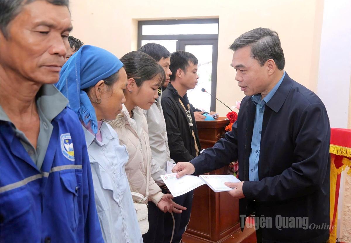 Dịp này, đồng chí Ma Thế Hồng đã tặng quà cho Ban quản lý thôn và 50 hộ dân bị ảnh hưởng do mưa lũ trong tháng 10 vừa qua.