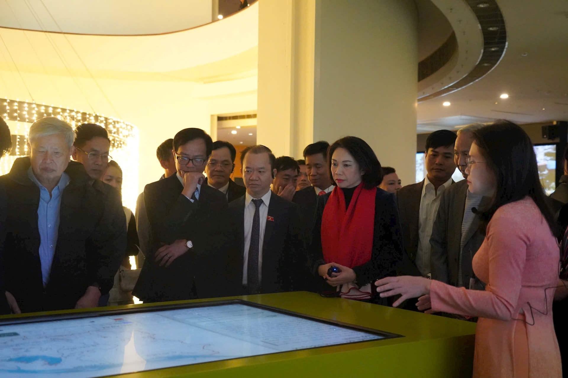 | Phó Chủ tịch UBND thành phố Hà Nội và các đại biểu xem trưng bày cố định tại các tầng của Bảo tàng Hà Nội. Ảnh: H.L |